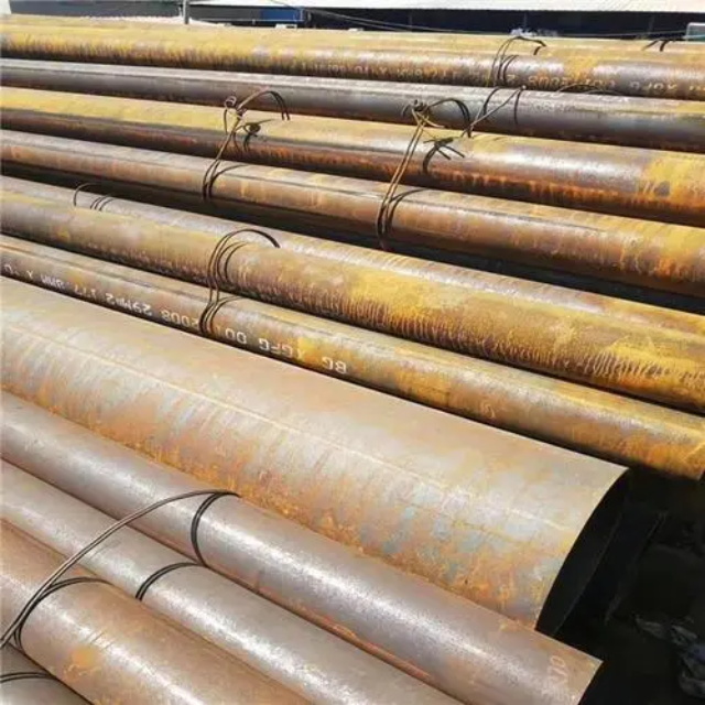 甘肃gb3087无缝钢管要用钢锭或实芯管料经破孔制成毛管,随后经热扎、冷轧或冷拨制成。甘肃gb3087无缝钢管在中国钢管业中具备重要的位置。据不完全统计,我国目前无缝管生产公司约240多家,无缝管机组约250多套,年产能力约450多万吨。从规格看,甘肃gb3087无缝钢管的原料是圆管坯,圆管胚要经过切割机的切割制作成长短约为1米胚料,并经输送带送至溶炉内加温。钢坯被送进溶炉内加温,温度约为1200℃。燃料为氢气或乙炔。炉内温控是关键性的难题.圆管坯出炉后要经过压力穿孔机开展穿空。一般较常见的穿孔机是锥形辊穿孔机,这类穿孔机生产效率高,产品品质好,破孔扩径量多,可穿多种钢种。破孔后,圆管坯就先后被三辊斜轧、连轧或挤压。挤压后应脱管定径。定径机根据锥形钻头高速运转入钢胚打孔,产生钢管。钢管内径由定径机钻头的直径长短来决定。钢管经定径后,进入冷却塔中,根据喷水冷却,钢管经冷后,就要被校直。钢管经校直后由输送带送往金属探伤机(或压力试验)进行内部探伤。若钢管内部有裂痕,气泡等问题,将被检测出。钢管质检后还要通过严格手工选择。钢管质检后,用漆料喷上编号、规格、生产日期等。并由吊车吊入仓库里。